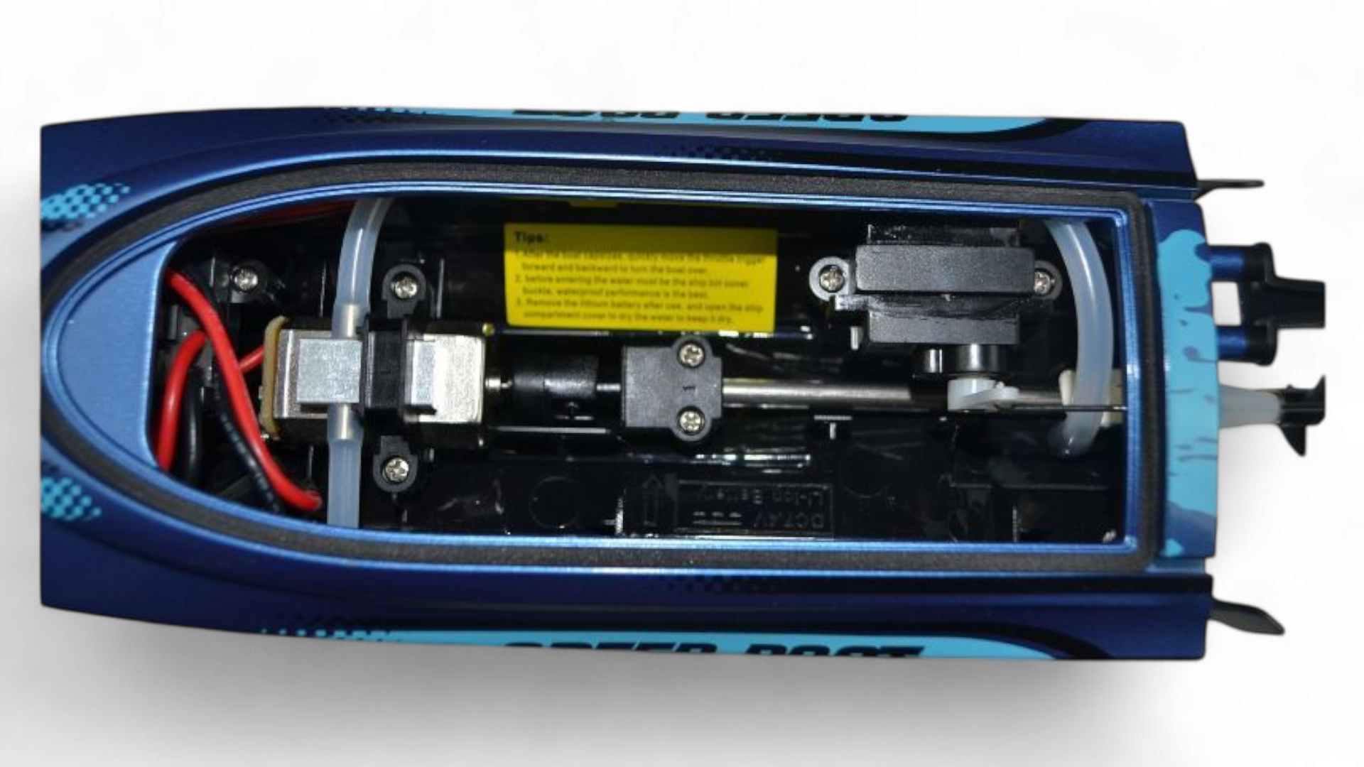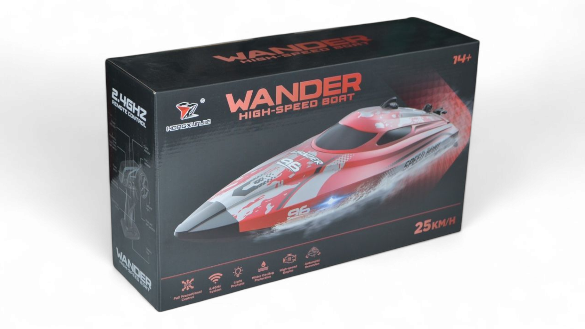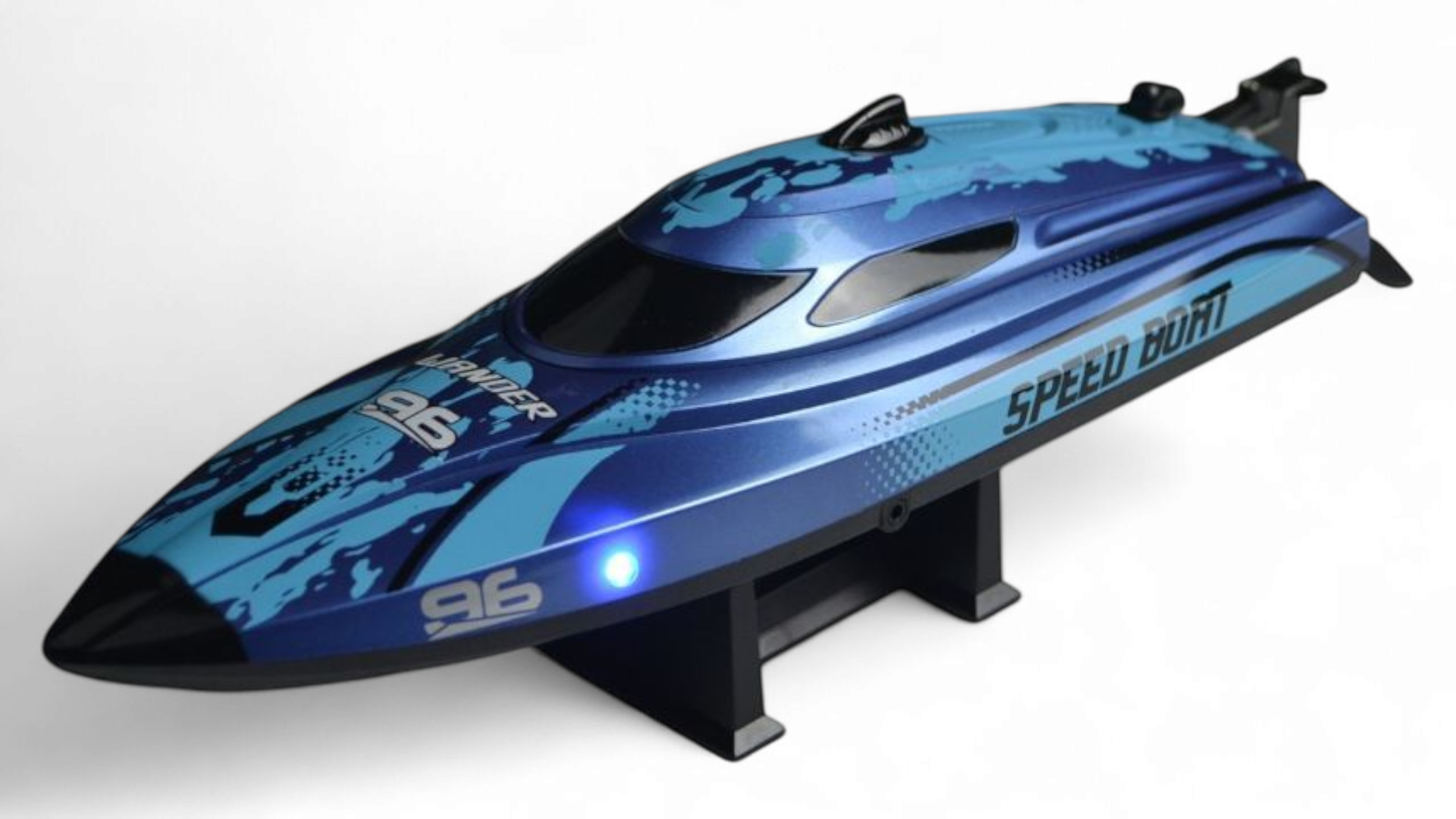 Катер отличается простотой управления, что делает его подходящим даже для начинающих. Две скорости позволяют адаптировать катер к различным условиям. Пульт управления пистолетного типа, работающий на частоте 2,4 GHz, обеспечивает стабильный сигнал и исключает помехи.