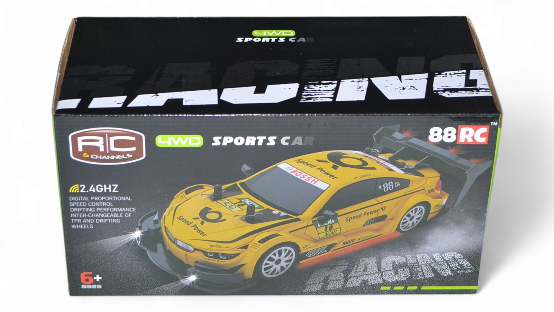 Пульт дистанционного управления работает на частоте 2,4 ГГц и имеет радиус действия до 40 метров, что позволяет свободно перемещаться и управлять моделью на больших пространствах.