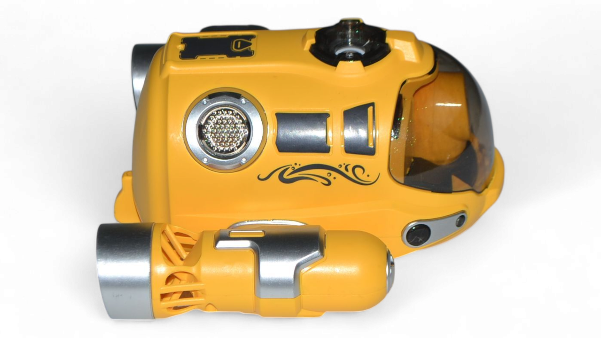 Компактные размеры: Длина 15,5 см, ширина 17 см и высота 9 см делают его маневренным и удобным в управлении. Батискаф развивает скорость до 5 км/ч, обеспечивая динамичное и захватывающее плавание.